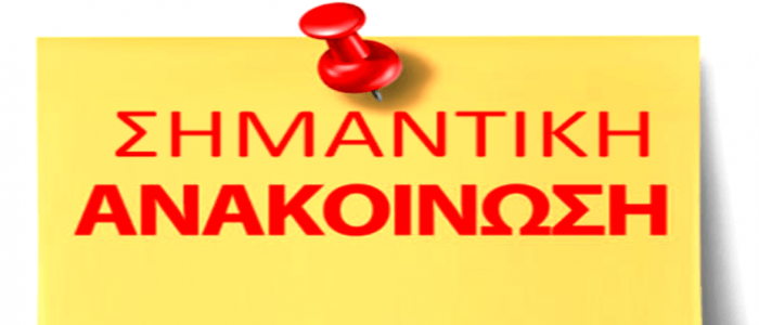 "Ανακοινώνεται ότι τα σχολεία πρωτοβάθμιας Εκπαίδευσης του Δήμου Κατερίνης θα λειτουργήσουν αύριο Δευτέρα 18 Ιανουαρίου 2021 με ώρα προσέλευσης των μαθητών 09.30 το πρωί"